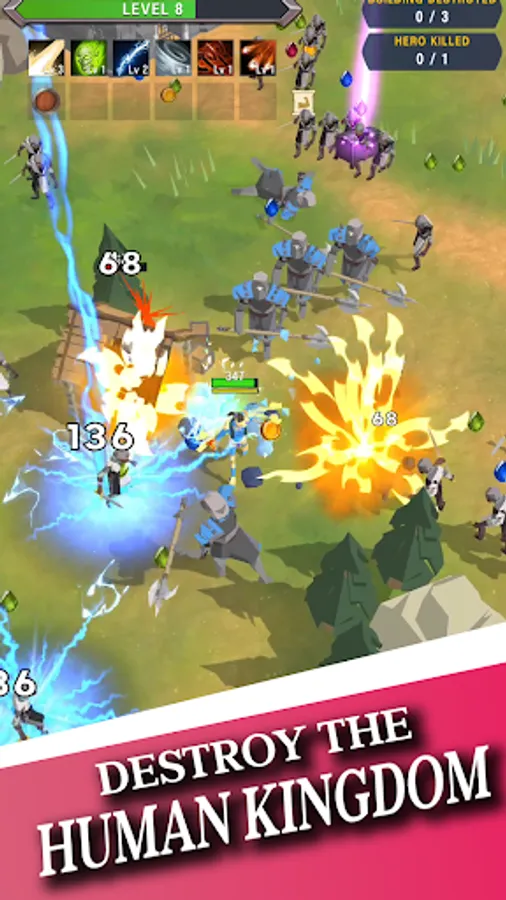 In this game, you'll play as a powerful character from the dark force, using a variety of abilities and magic to engage in battle against humans and expand your power, ultimately aiming to completely conquer the human kingdom.