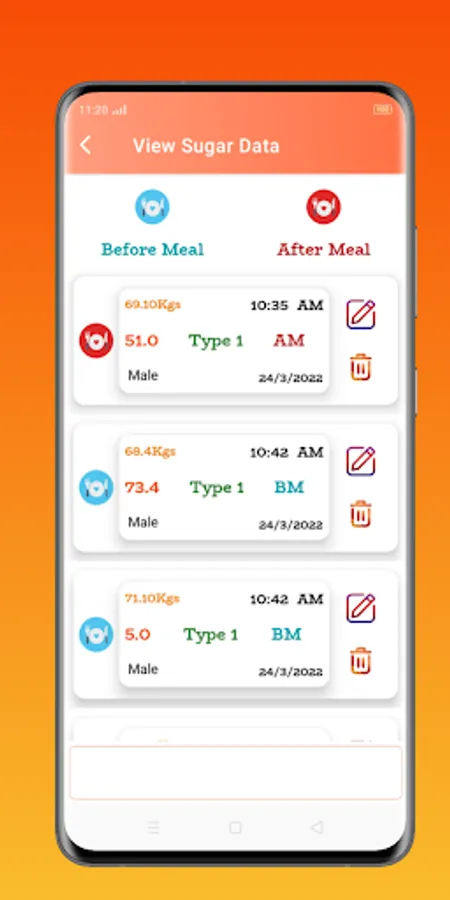 You can view the charts of blood sugar / glucose level, weight, Bread unit taken, blood pressure, mood condition, hemoglobin level. You can view filtered chart data by tags and time. You can view statistics of Blood sugar / glucose level (minimum, average, and maximum), Blood pressure (minimum, average, and maximum) and weight. Blood Sugar: is very useful for who often checks their blood sugar / glucose and offers an easy way of logging your blood sugar readings in one place and track it. Weight: Log your weight everyday.