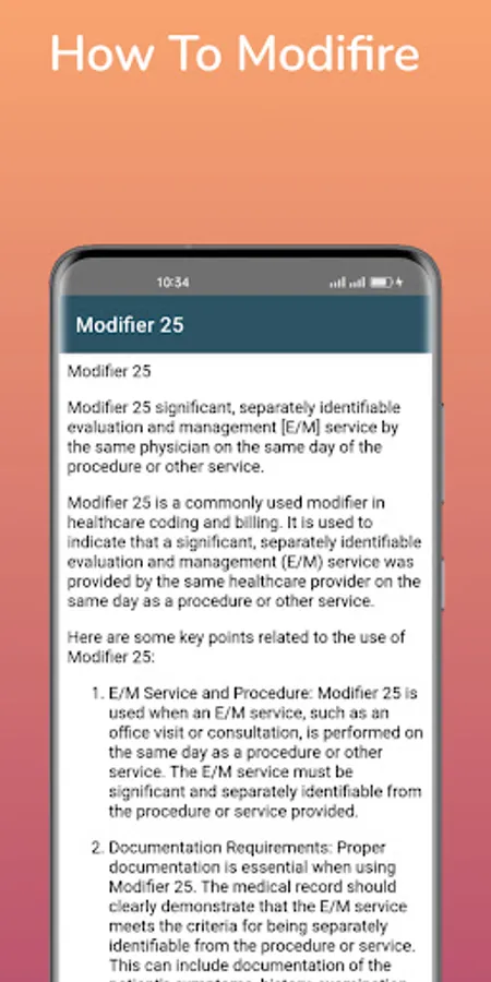 Modifiers Made Easy: Understand the importance of modifiers in medical billing and learn how to correctly apply them. Our app provides a detailed breakdown of commonly used modifiers and scenarios where they come into play. Clear explanations and visual aids ensure you grasp the concept quickly.