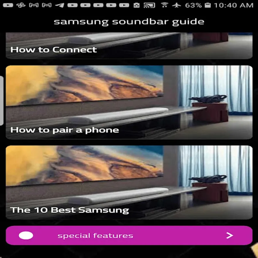 Features of the Samsung Soundbar Guide app