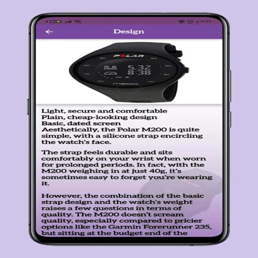 - Are you looking for features and details of a smartwatch of a type Polar M200 watch