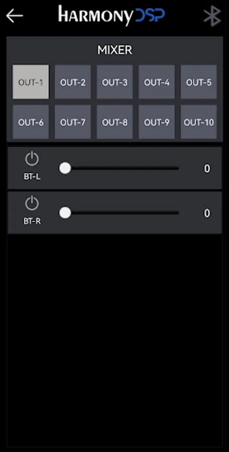 With the MIX function you can manually determine which inputs (USB-L/R, Digital-L/R, BT-L/R) will be used for each output (processing channel) and how much of each input the output will receive.