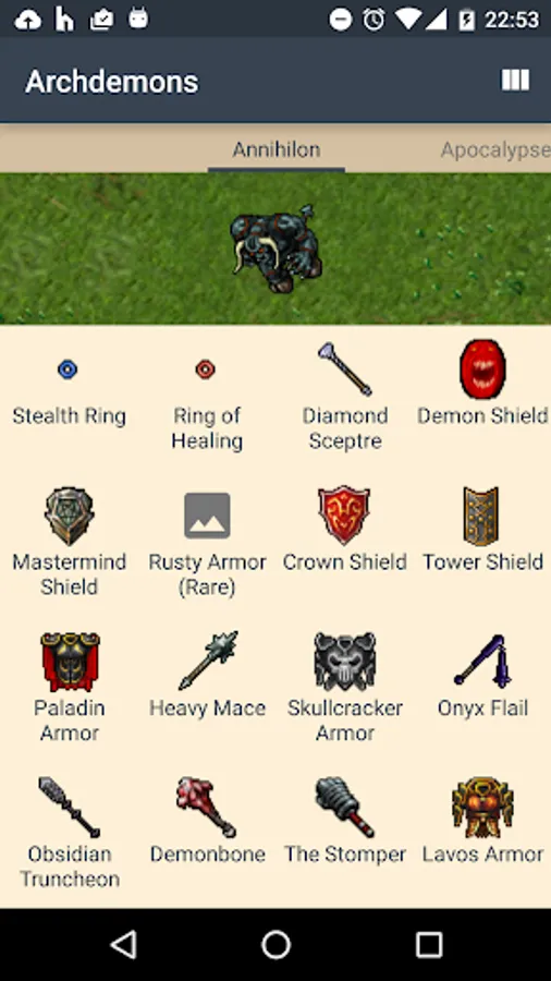 1 - Please note that the only official website is www.tibia.com and from there part of statistical information as well as creature and item graphic info is gathered. Tibia is copyrighted by CipSoft GmbH.