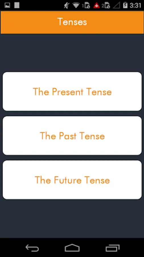 Simple Present Tense, Simple Past Tense, Simple Future Tense.