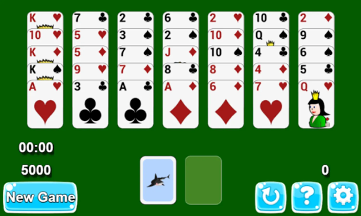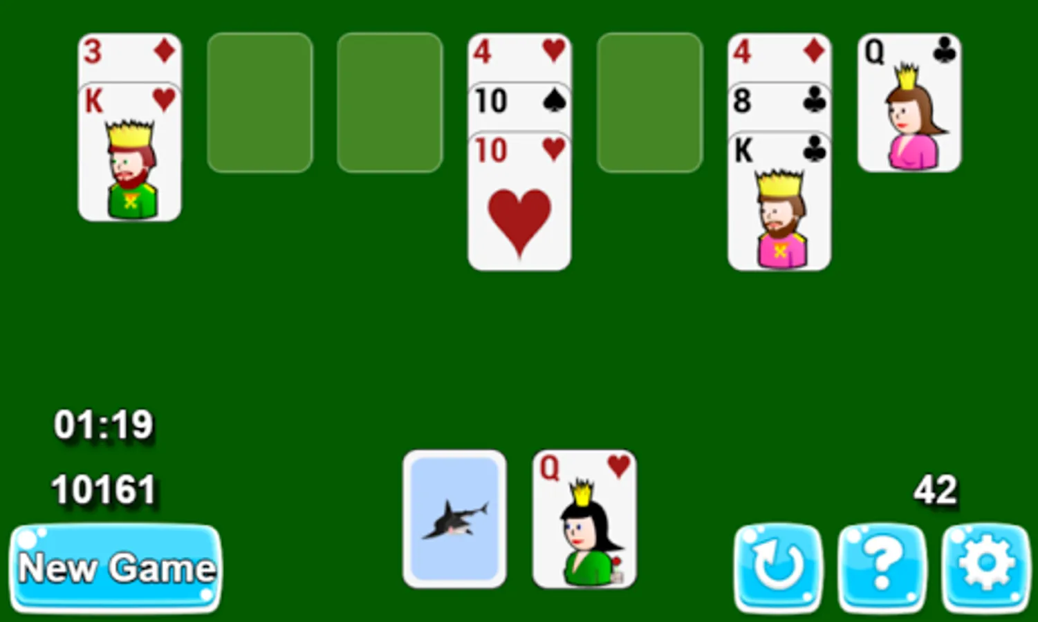 The goal is to move all cards to the waste at the bottom of the table. In this solitaire you can move one card at a time. Only the last top card of each tableau column can be moved. You can add a card to the waste only if its bigger or lesser with one from the last card on the waste.
