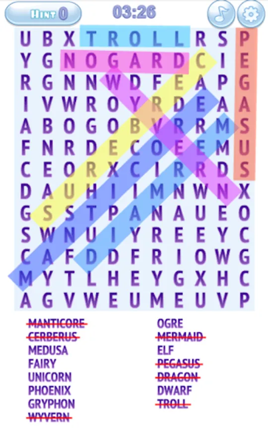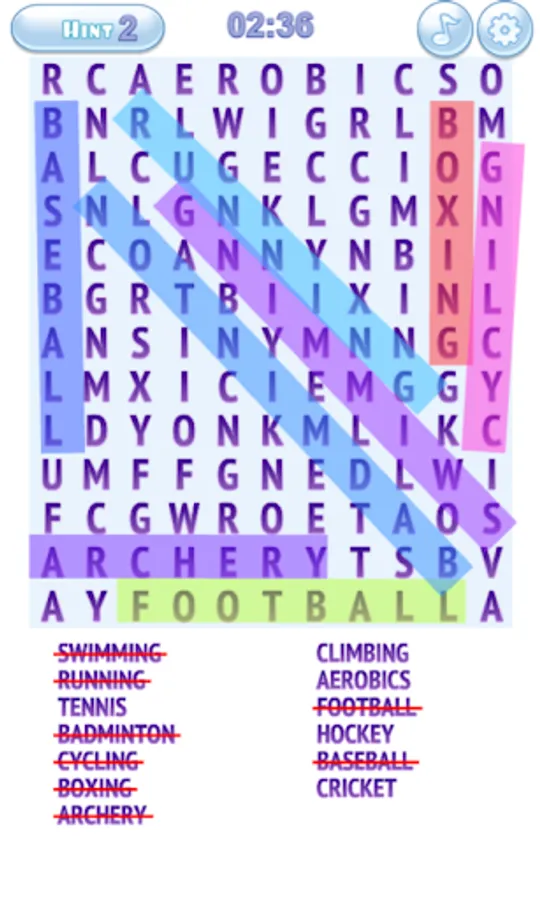 WordSearch is fun game with an option of fast play or following levels with different themes. The game has 21 different topics as separate levels. If you can't find a word you can use hints(or not)