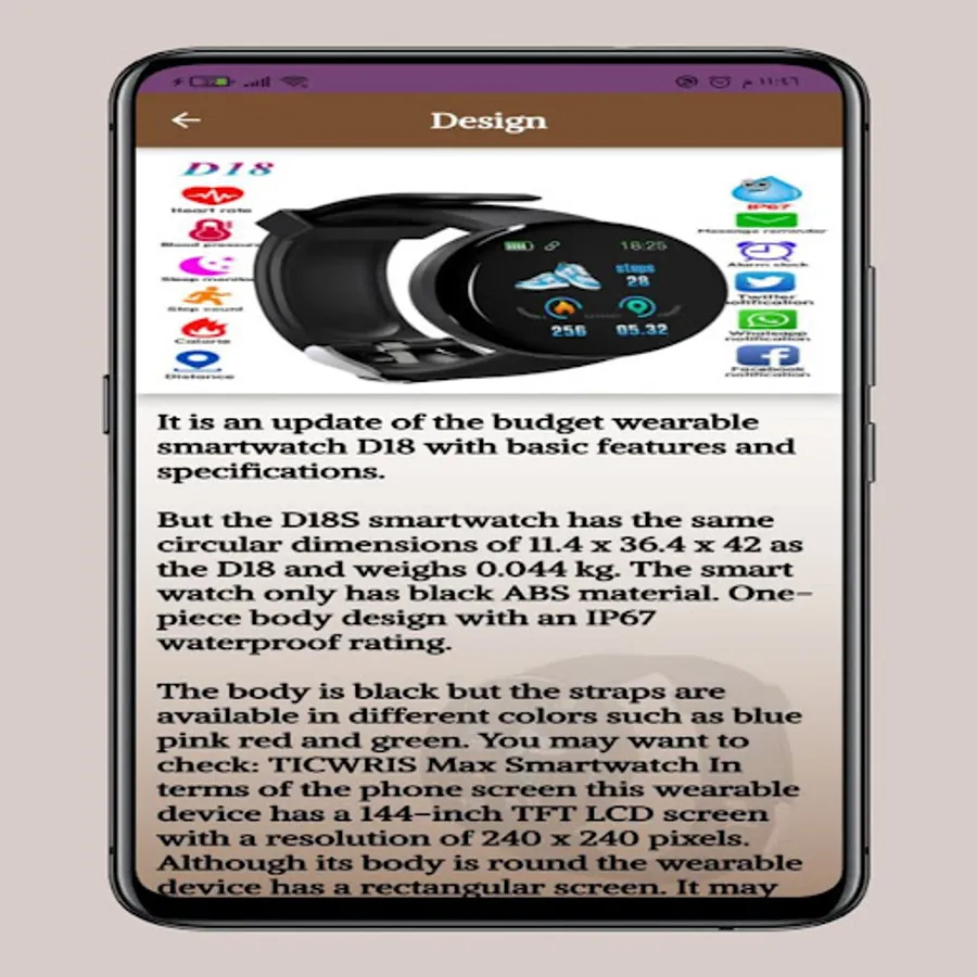 I present to you the application explaining the features and specifications D18 Smart Watch in short, where you can review and experience a comprehensive watch D18 Smart Watch easily through the application