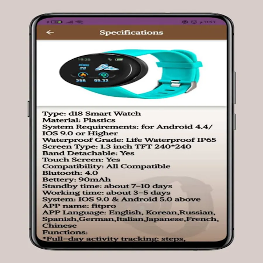 - Are you looking for a description of the type of D18 Smart Watch ?