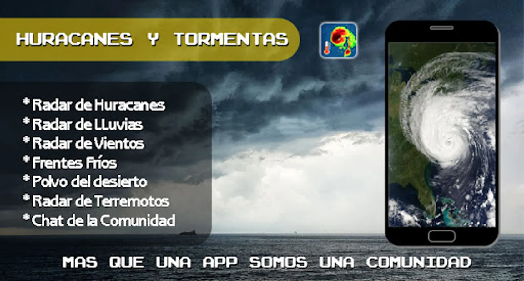 Our application is one of the most complete in the world, it has many tools that are mainly aimed at monitoring hurricanes, tropical storms, tropical waves, tropical depressions, typhoons, cyclones, cold fronts, precipitation or rain, winds and dust from the desert.