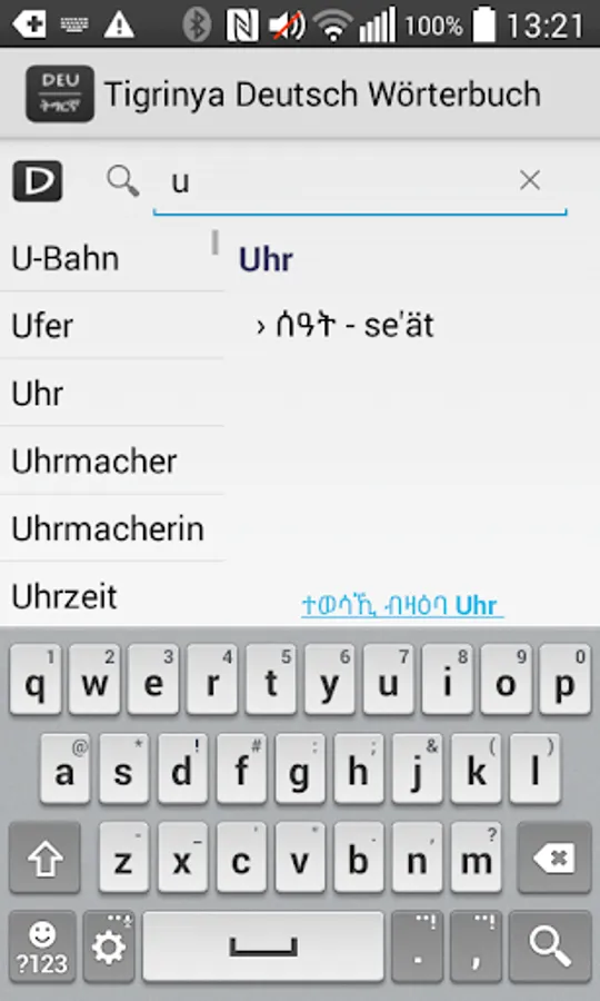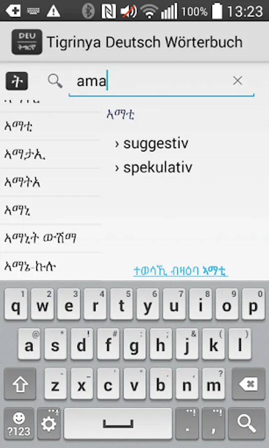 Tigrinya to German and German to Tigrinya dictionary developed by geezexperience.com. The app also includes Latin transliteration for people who can not 'yet' read geez alphabets. You don't need to know how to read Tigrinya alphabet to use the dictionary.