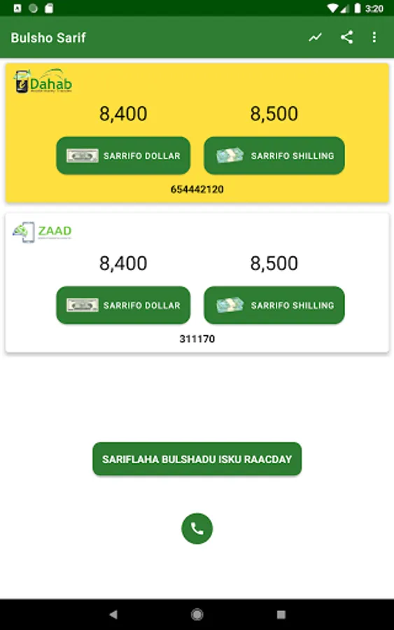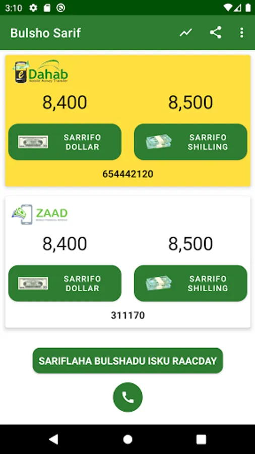 Sariflaha Bulsho Money Exchange Waa App aad ka sarifan karto Zaad iyo eDahab.
