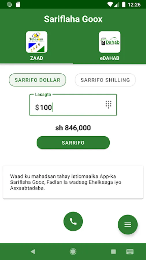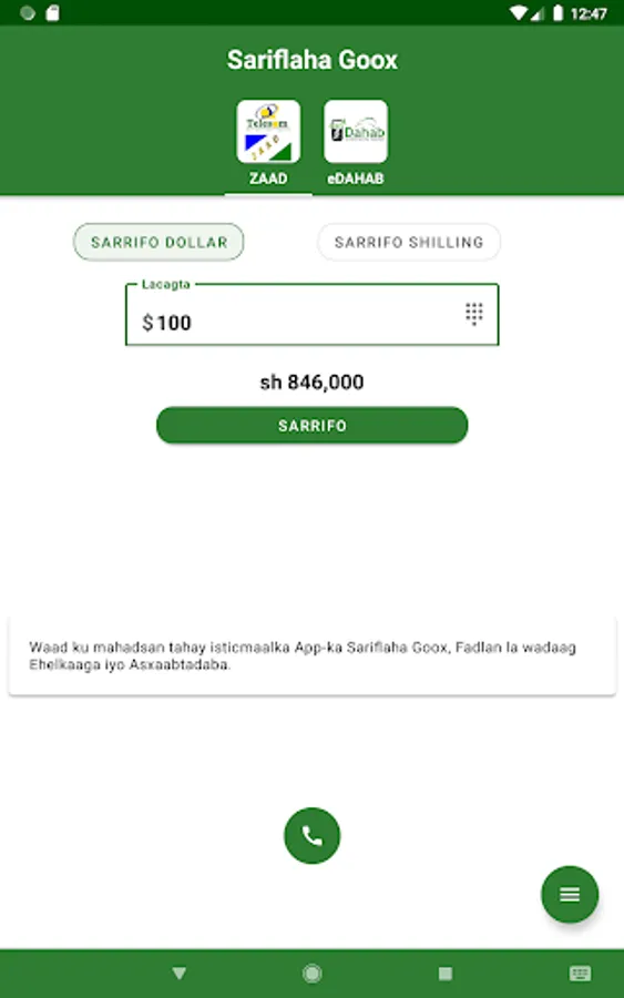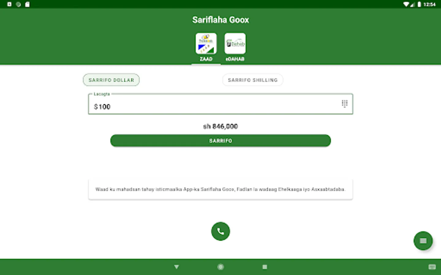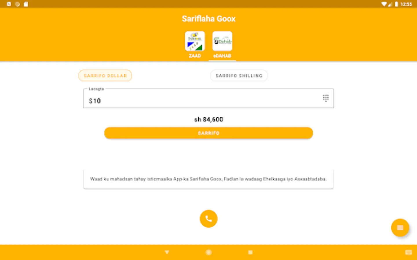Goox App, Waa App Sarrif oo xajmigiisu aad u yar yahay, Mobile kana aan kaa buuxinaynin.