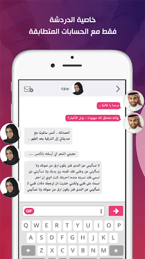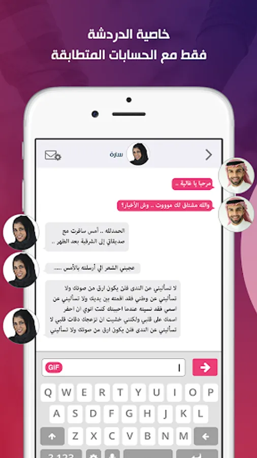 • البحث المخصَّص يمكنك من اختيار أن يكون البحث بحسب القرب الجغرافي (Nearby) مثلًا: (السعودية، الرياض،جدة..)، أو أن يكون بحثًا متقدمًا بحسب تفضيلاتك ومواصفاتك (البلد، المدينة، العمر، الحالة الاجتماعية، المواصفات الشكلية..) أو بحسب الكلمات المفتاحية (بنات، زوجة، صداقة..).