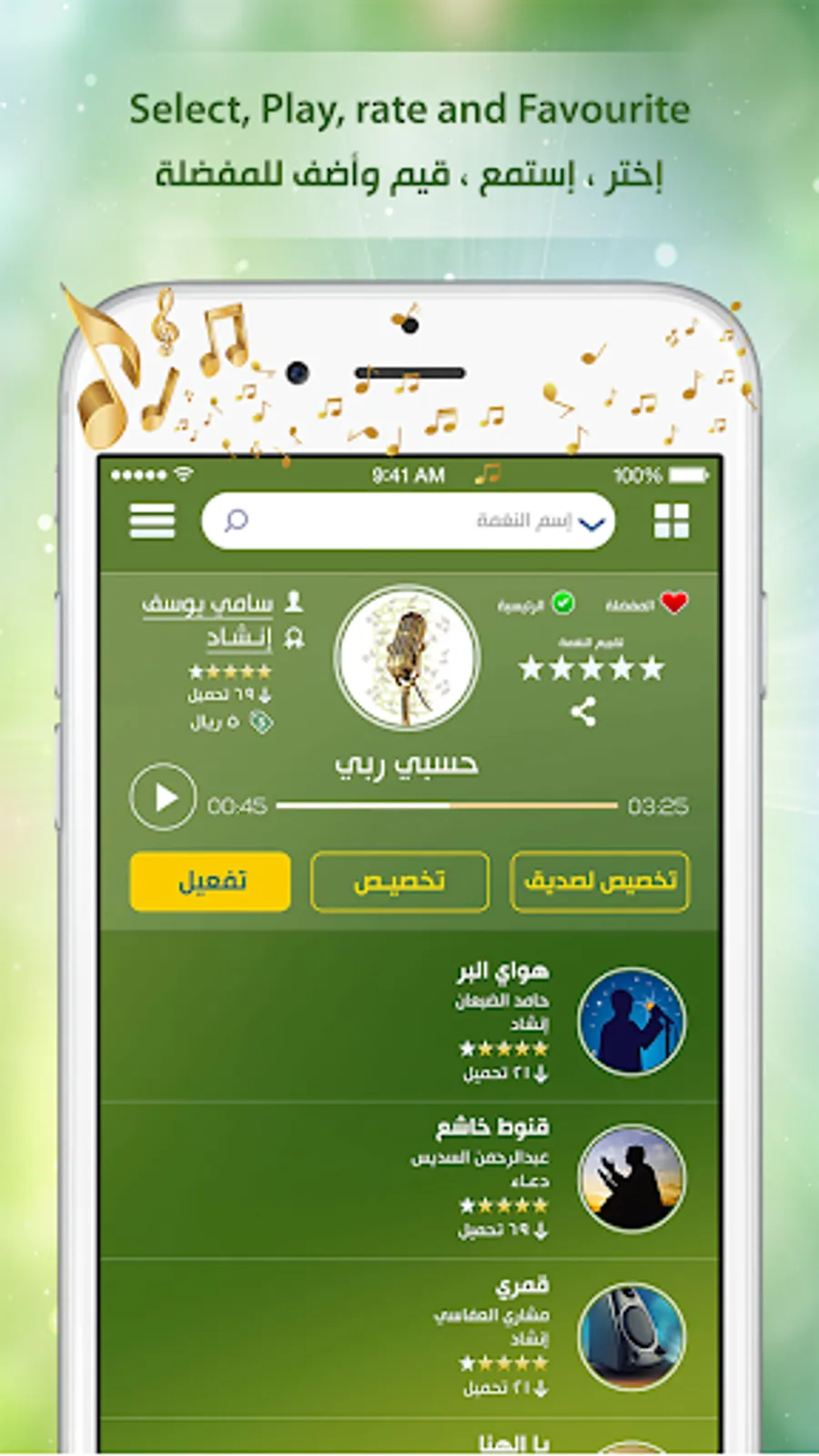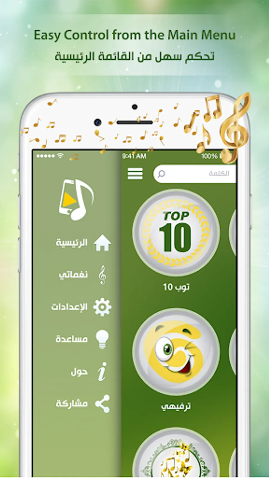 يتمتع تطبيق نغمتي بواجهة سهلة الإستخدام تمكنك من: