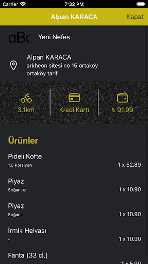 Receive and deliver packages from businesses in your area with the SonKurye application. Make your delivery by checking order details, delivery information and following the map.