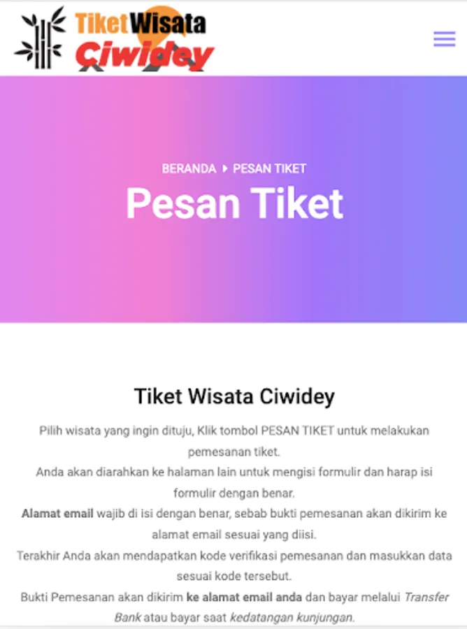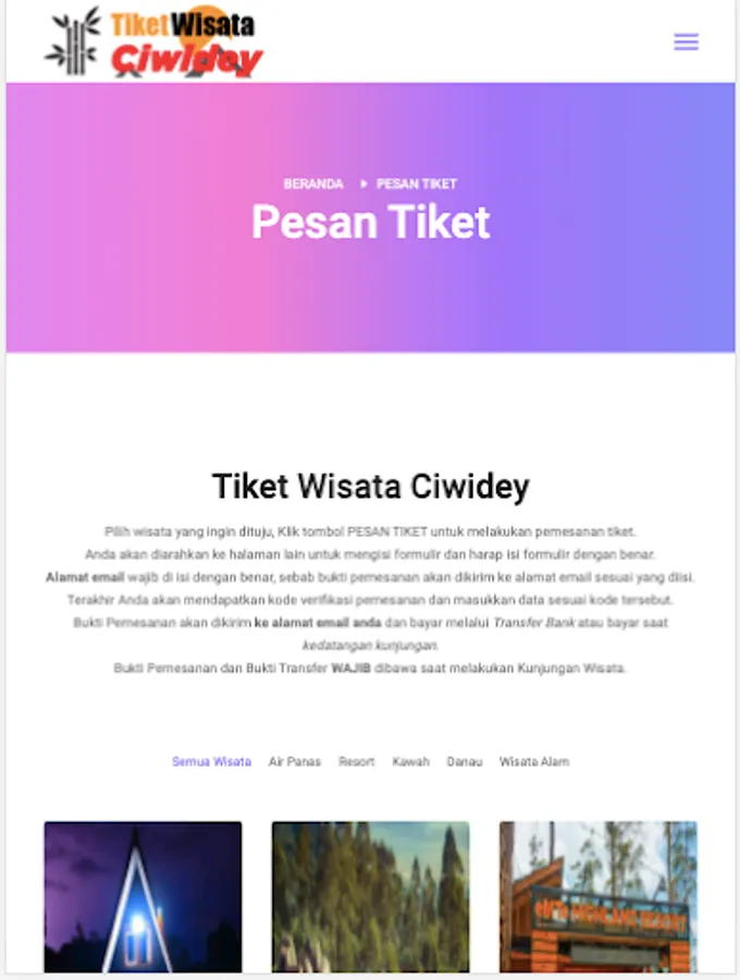 Ciwidey Travel Tickets is a site that provides online Ciwidey travel ticket bookings.