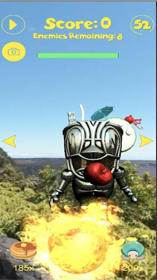 When you're hit by an enemy weapon your health declines. When your health runs low, tapping on a PowerPancake will restore it. TimeTurtles slow your clock down to Hawaiian time. The more turtles you use, the slower your clock will run.