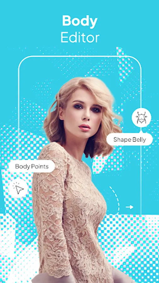 Body Editor effects and tools are easy to use. With body shape editor of photo editing app free, you can reshape your body and face tune your selfie quickly, enlarge breasts and hips naturally, shrink your waist, and even increase height without home workouts