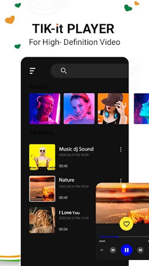 Tik-it Music Player is a powerful online music player that lets you enjoy your favorite world music with ease. Tik-it Music Player makes it easy to Listen your favorite Music in high quality.