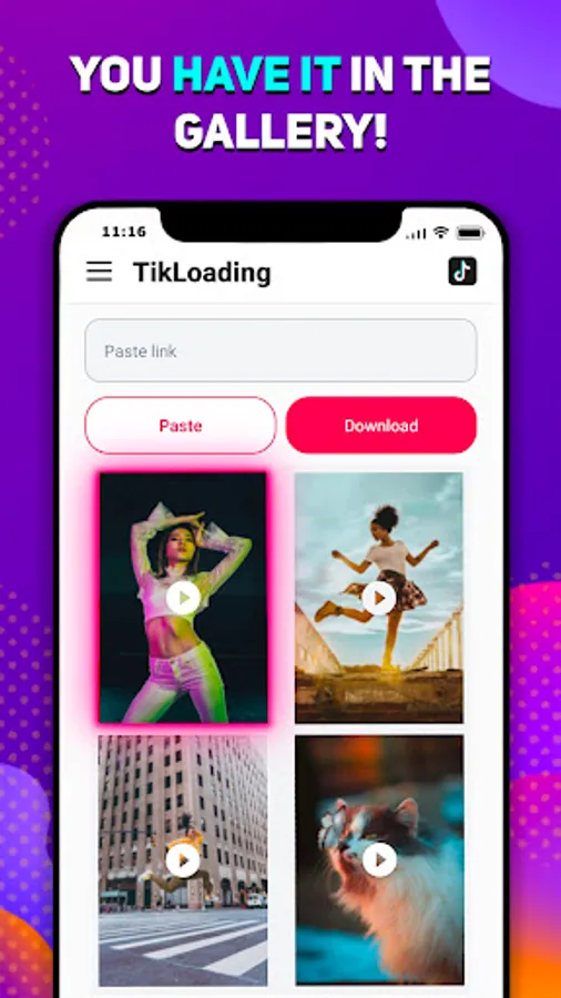 With app TikLoading: Tik Tok Video downloader - No Watermark you can save high quality videos from any channel you liked. For instance, you can download videos in phone gallery. Then you can view them offline anytime you like. Moreover, in order to download any materials you do not need to use Tiktok as a social network.