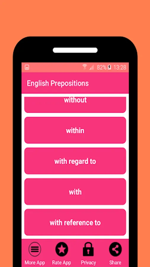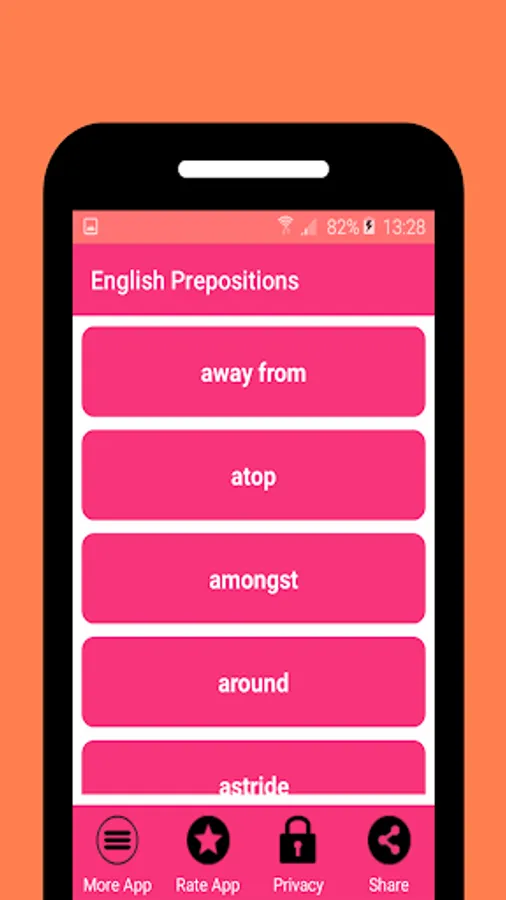 English preposition application includes all the preposition in english with examples and meaning from A Z to learn all rules of english grammar because many beginner and student in english language is find some difficulties to understand english preposition with this app will be advanved in preposition and understand very easily.