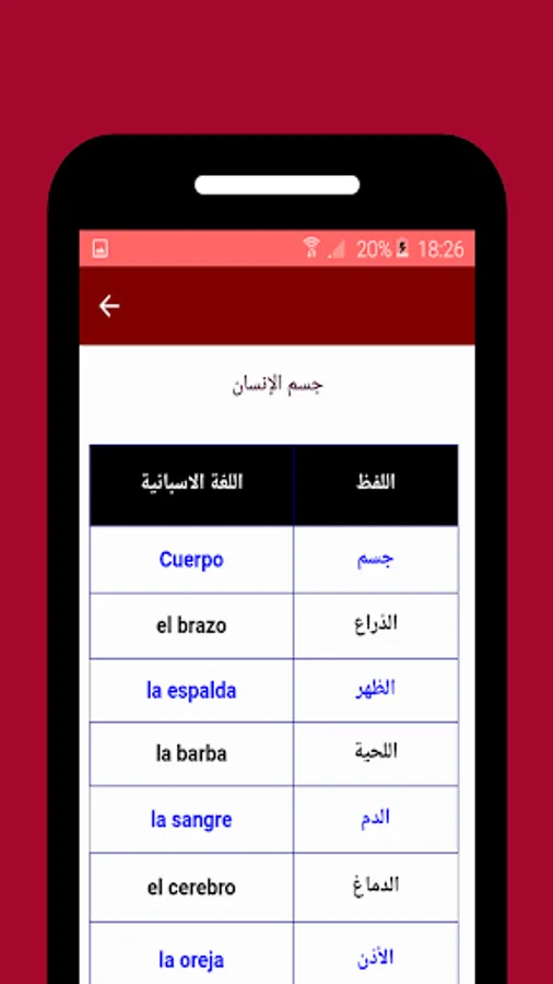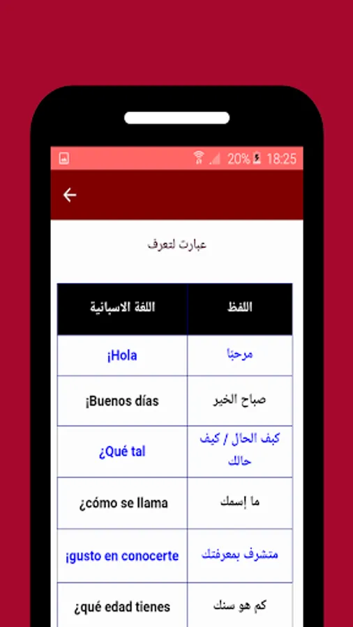 learn Spanish with examples and transcription from Arabic to Spanish for beginners and without internet.