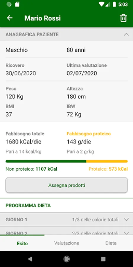 The purpose of this app is to provide IT support to the prescription of the nutritional program (based on scientific evidence) to the critical patient, by the intensivist doctor. It also provides support for choosing the route of administration, the caloric requirement, and the timing for reaching the therapeutic regime.
