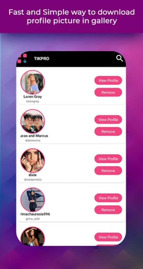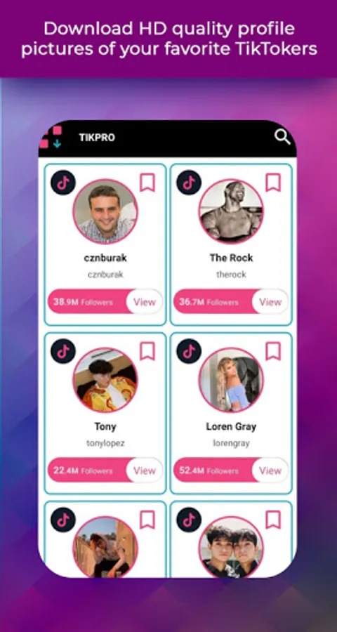 Profile photo downloader allows you to browse through any TikTok profile,bookmark and download profile’s photo.