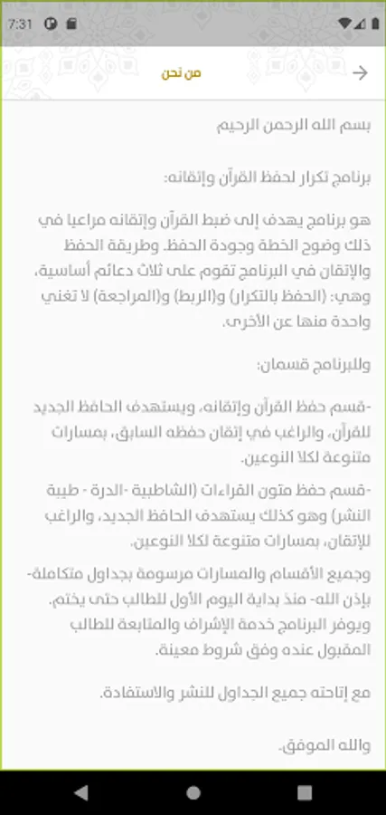 Repetition program for memorizing and perfecting the Qur’an in the city of the Messenger of God, may God bless him and grant him peace, Medina, a program that aims to control and master the Qur’an, taking into account the clarity of the plan and the quality of memorization.