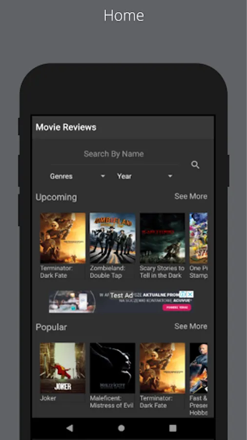 Movies app shows a list of upcoming and best English movies, Hindi movies.