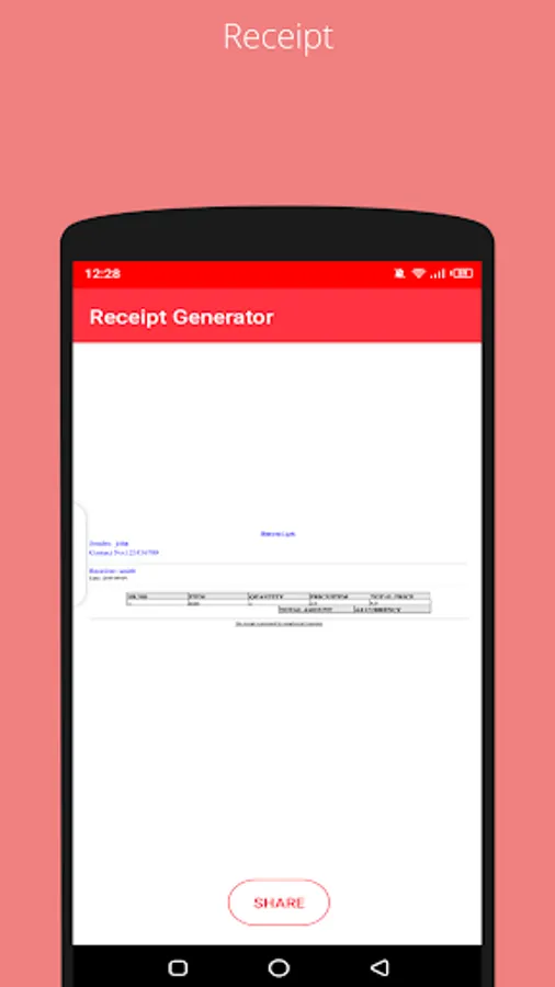 Receipt Generator is developed by tikrosoft technolofies which will allow users to generate and share receipts. Like if you are buying something from OLX(olx.com) and you need to create and share a receipt of item you just sold to someone you can use this app to create a receipt and share it via any messaging app.It will create a pdf file which can be shared to other person.