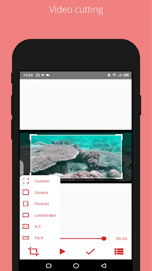 You can cut videos in square, landscape or in any custom orientation.