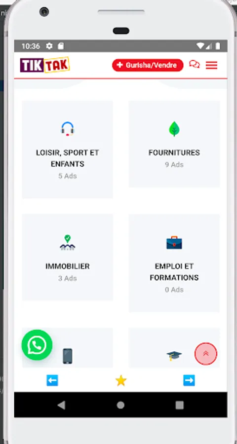 Mobile application for tiktak.bi, a classified website operating in Burundi.