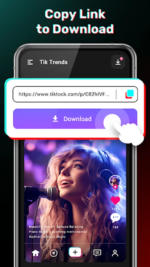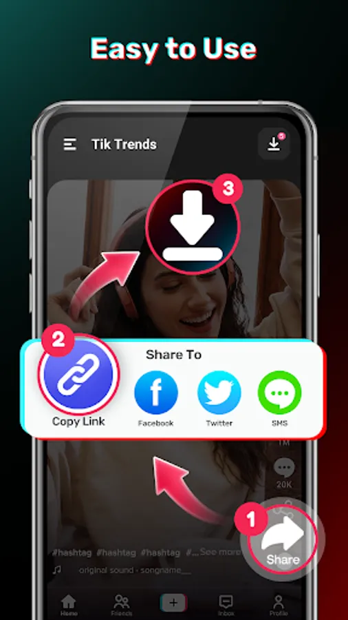 ๐2. Open tik-tok downloader and click to "Paste Link", your videos are automatically downloaded in app watermark video.