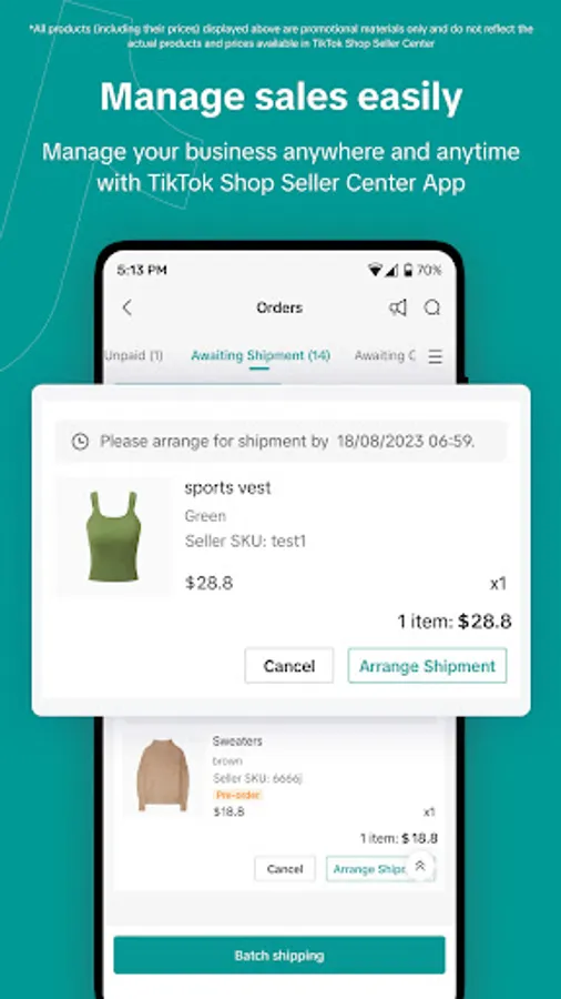 TikTok Shop Seller Center App enables sellers to manage their TikTok Shop via mobile phone. Available features including but not limited to seller registration, product management, order management, return&refund management, customer service and data analysis.