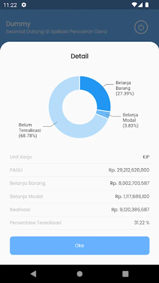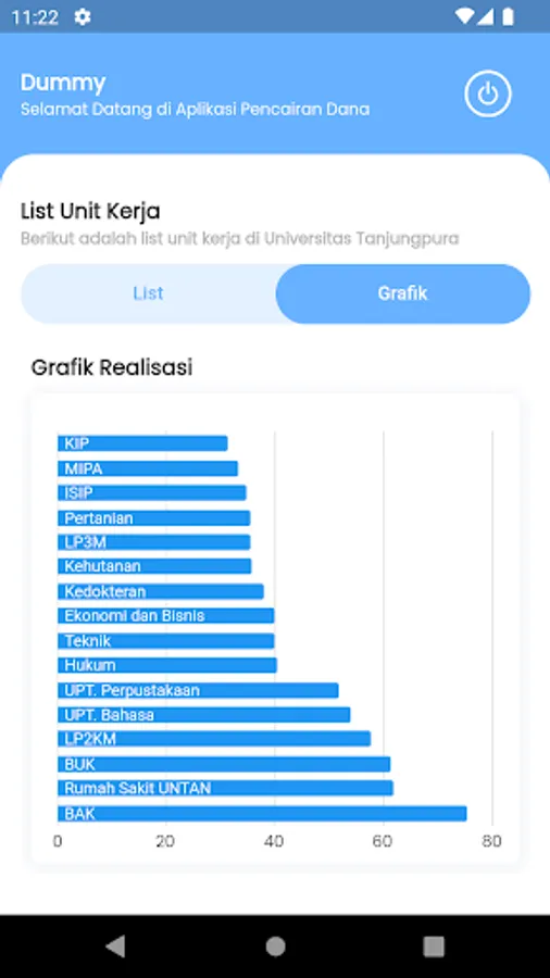 This application displays detailed data on disbursement of funds by all work units at Tanjungpura University. Detailed results are displayed through a graph in each work unit.