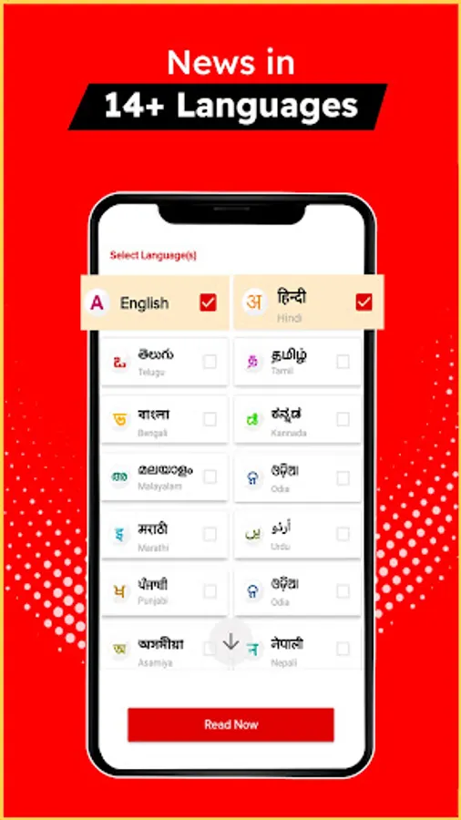 News available in 14+ languages from regional publishers. Personalized news in English, Telugu, Hindi, Marathi, Gujarati, Kannada, Bangla, Malayalam, Tamil Etc.