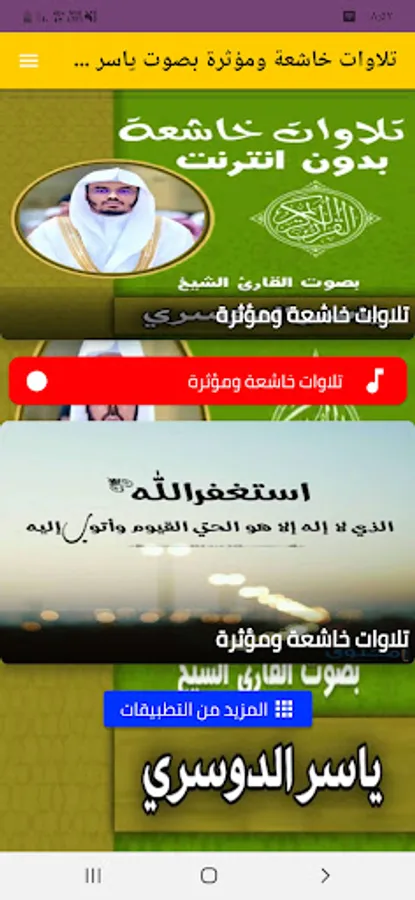 - Automatic transition to the next section of the best recitations of Yasser Al-Dosari.