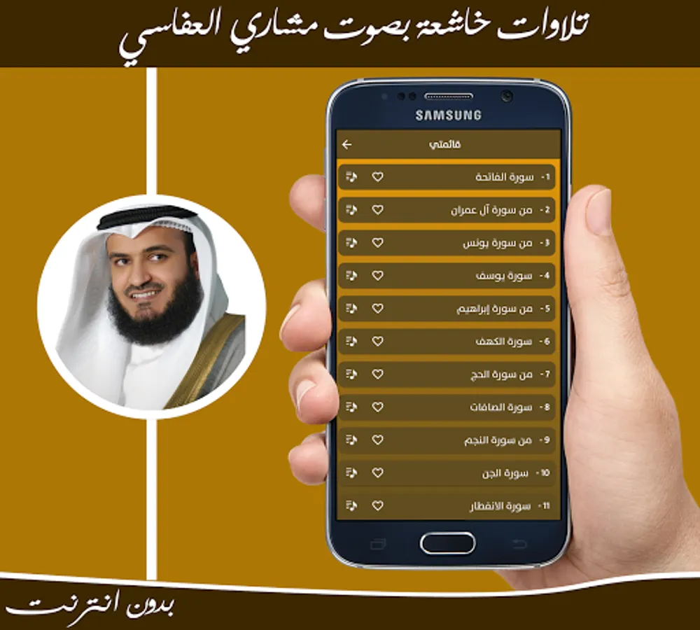 ❇ A humble recitation application with the voice of Sheikh Mishary bin Rashid Al-Afasy without the Internet A distinctive application with multiple features, the most important of which is that it is without internet to be used for every time and time