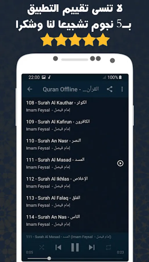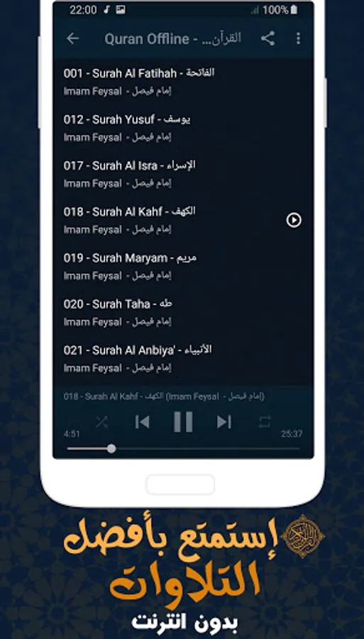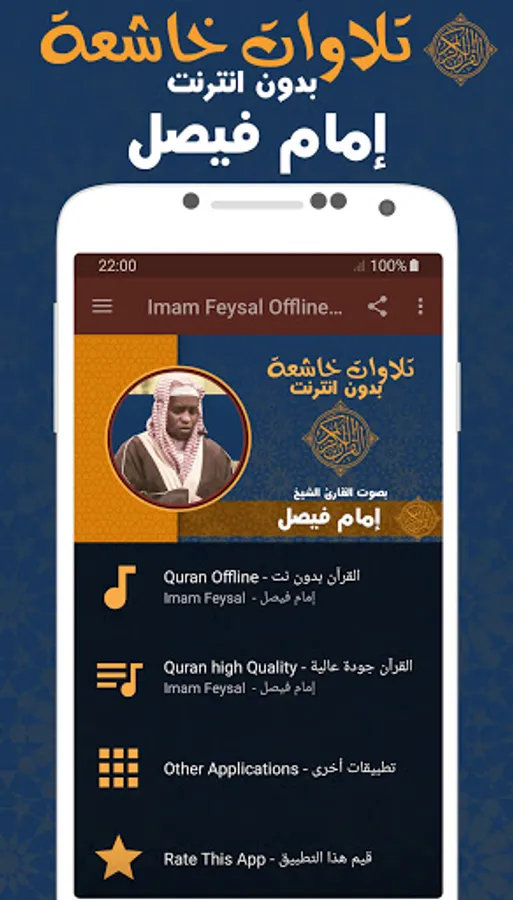 With this application you can listen to the most beautiful recitations of the Noble Qur’an by the reciter Imam Feysal