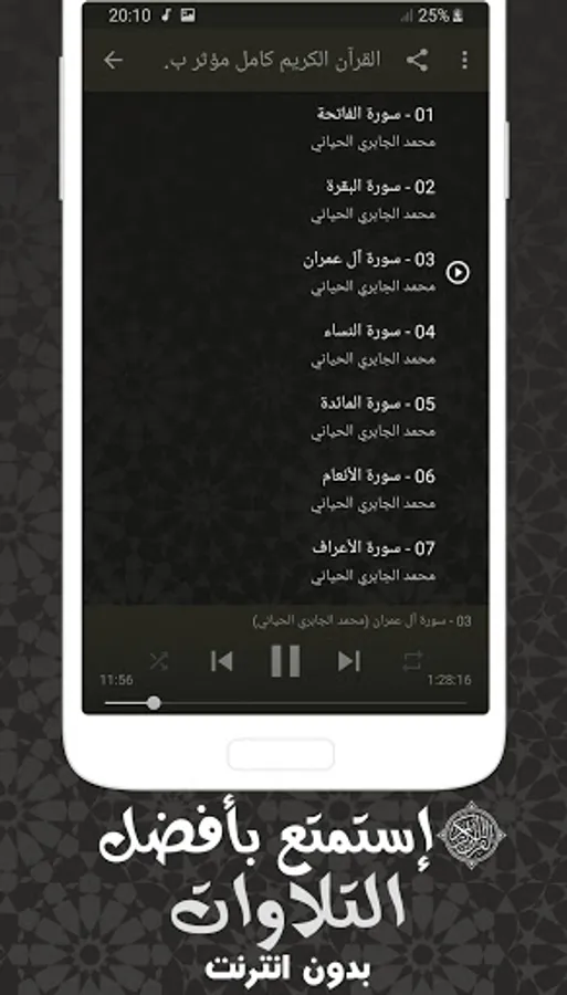 - This application allows you to listen to the most impressive recitations of the Noble Qur’an with the voice of the reciter Muhammad Al-Jabri Al-Hayani without the Internet, a voice that enters the heart without permission, I hope you like it