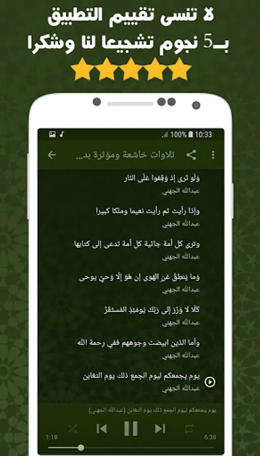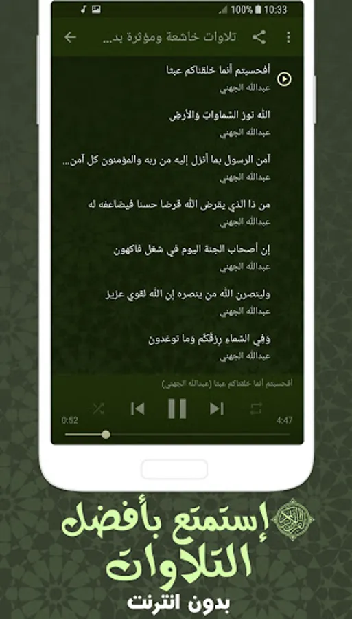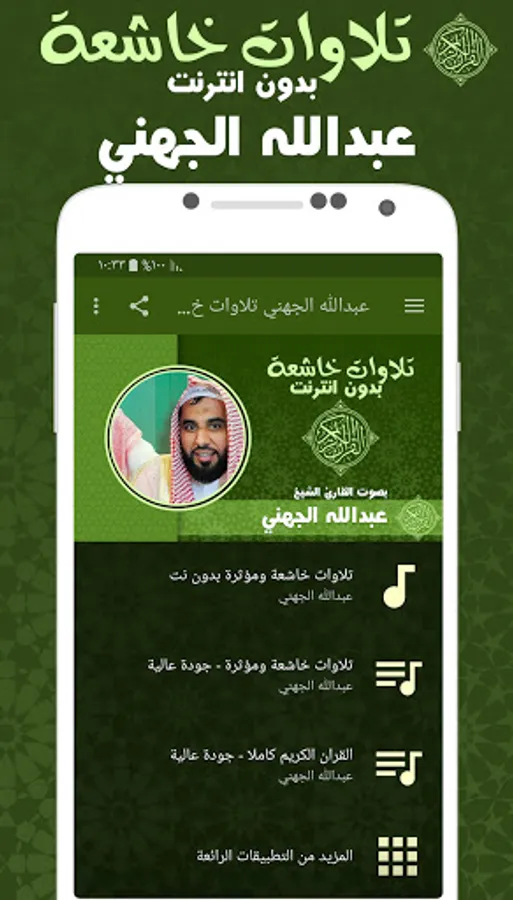 - This application allows you to listen to the most impressive recitations of the Noble Qur’an with the voice of the reader Abdullah Al-Juhani without the Internet, a voice that enters the heart without permission, I hope you like it