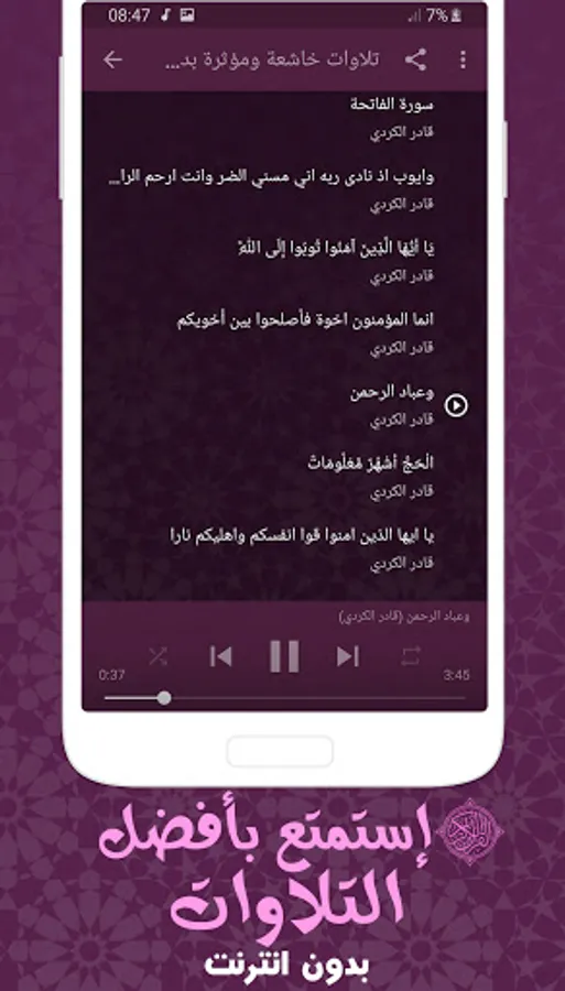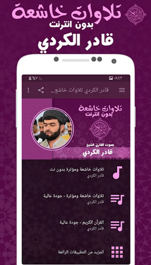 - This application allows you to listen to the most impressive recitations of the Noble Qur’an with the voice of the reciter Qader Al-Kurdi without the Internet, a voice that enters the heart without permission, I hope you like it