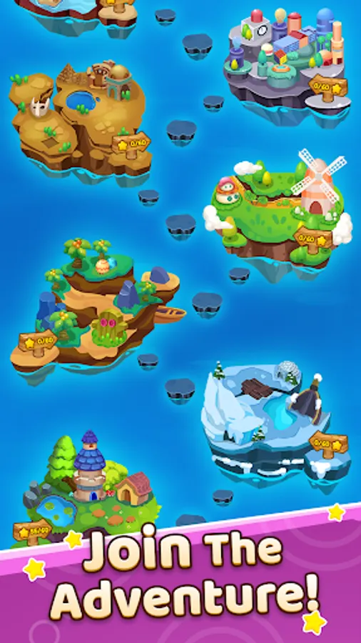 World map. There are more than 10 charming places to conquer and more than 1000 challenging arcades to pass.