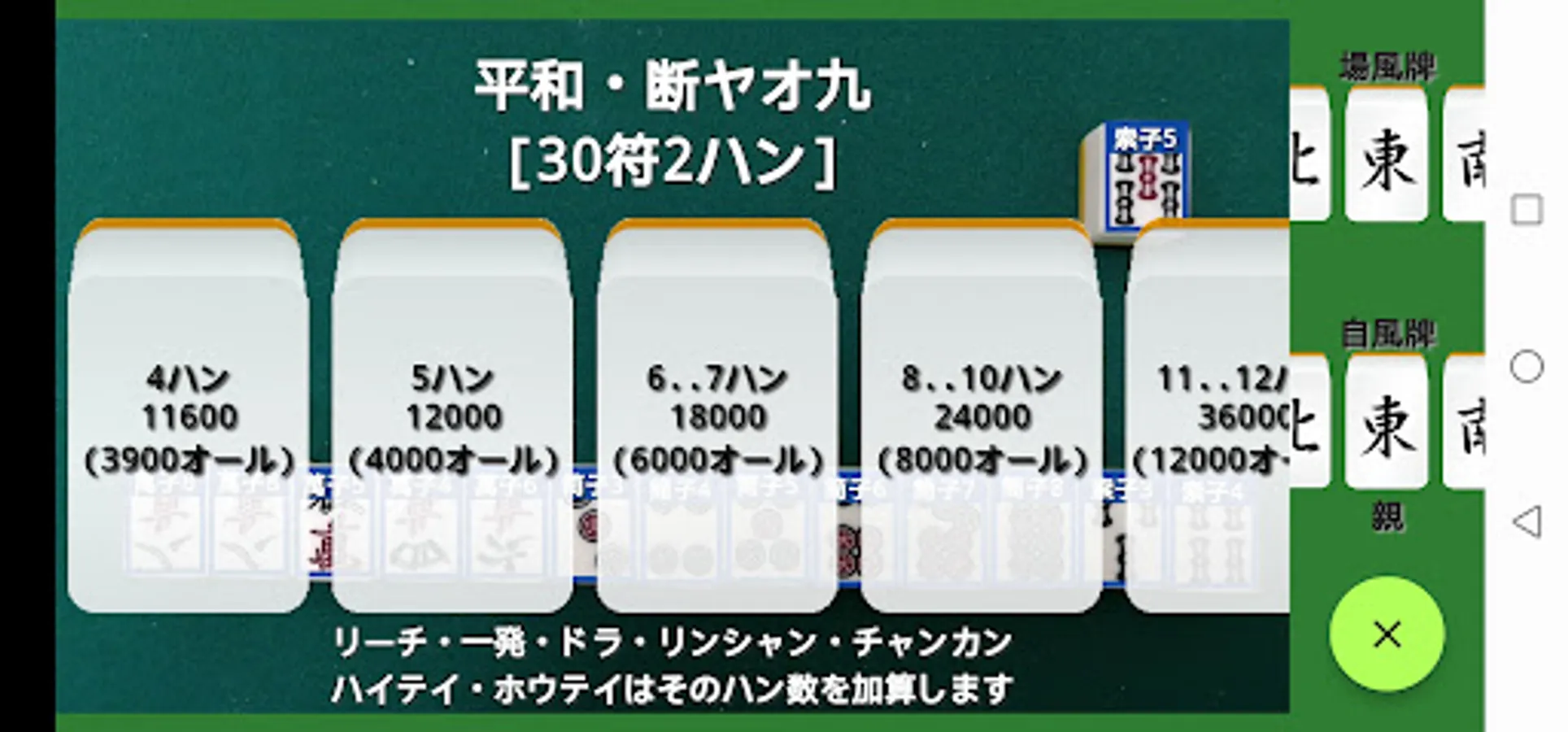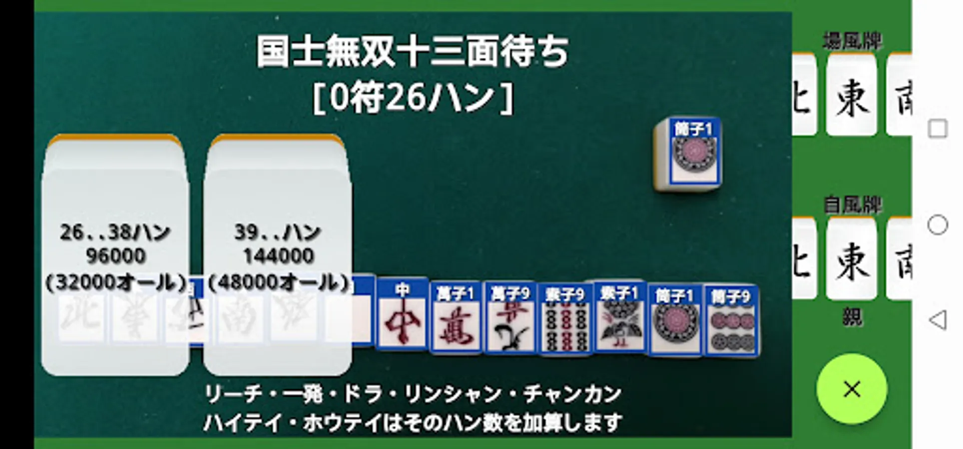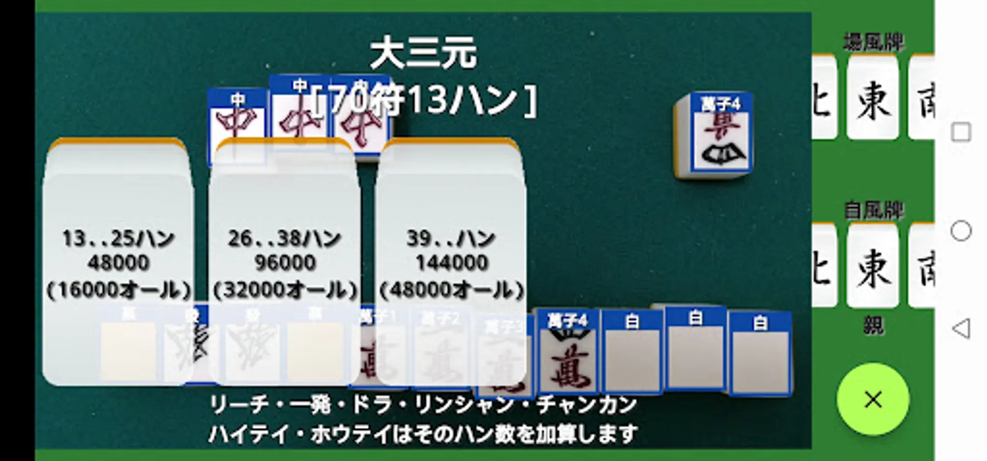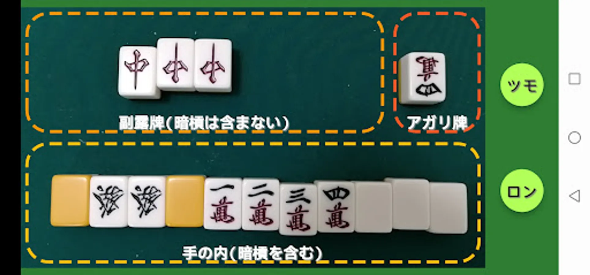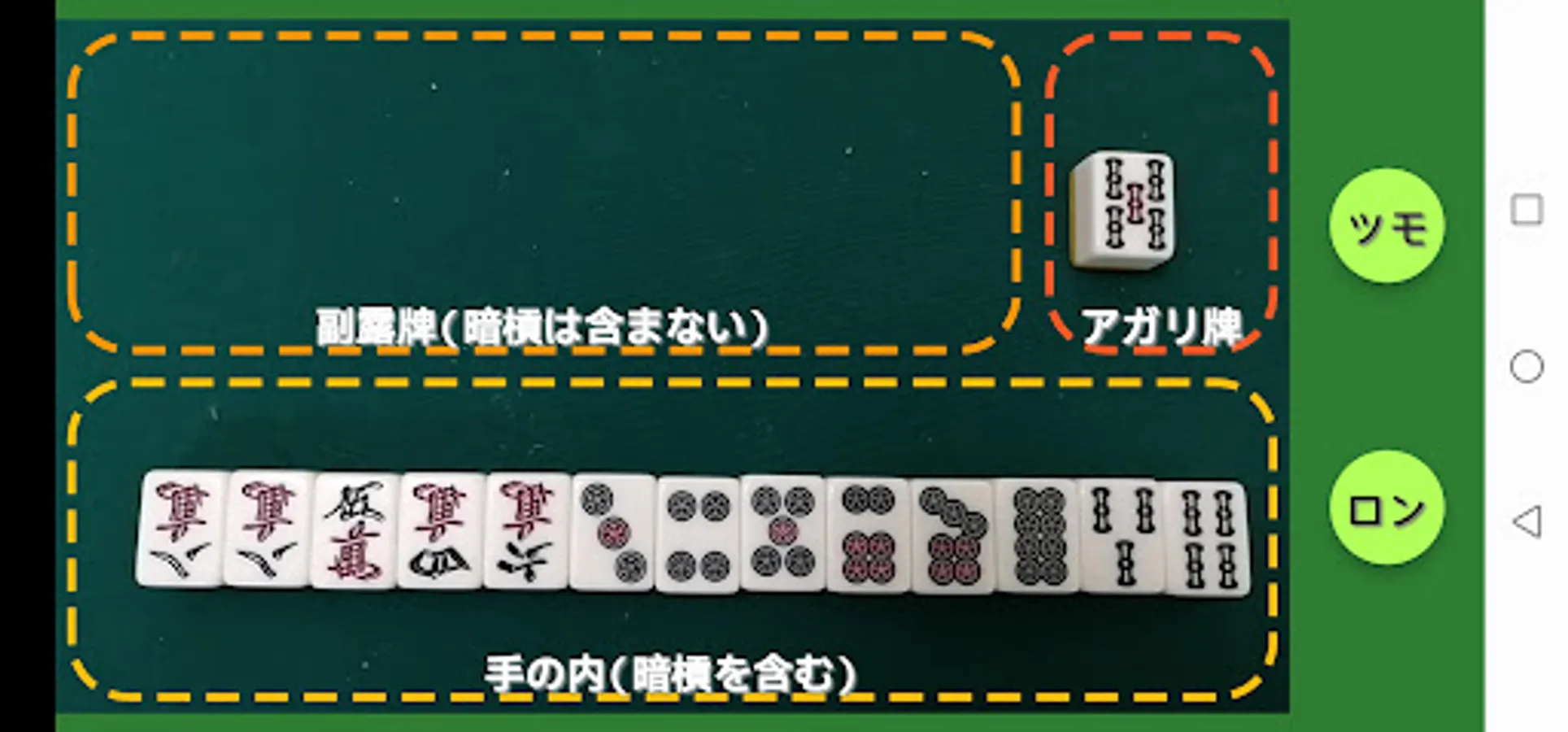 Is calculated as Akira, Junko, and Kokushi from the left. For example, if the Manko tiles are lined up at 2222345555, they will be treated as 2222 槓子, 345 Junko, and 555 engraving. The 4-disc set on the far left is treated preferentially as a 槓子. If you want to treat 222 as an engraver, 234 as a Junko, and 5555 as a 槓子, place 5555 to the left of 222.