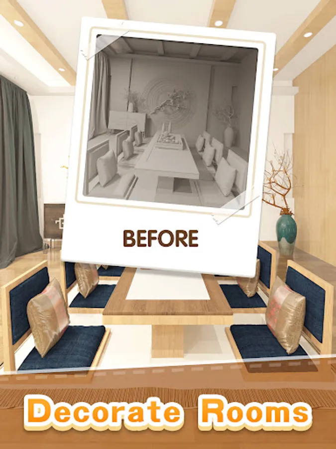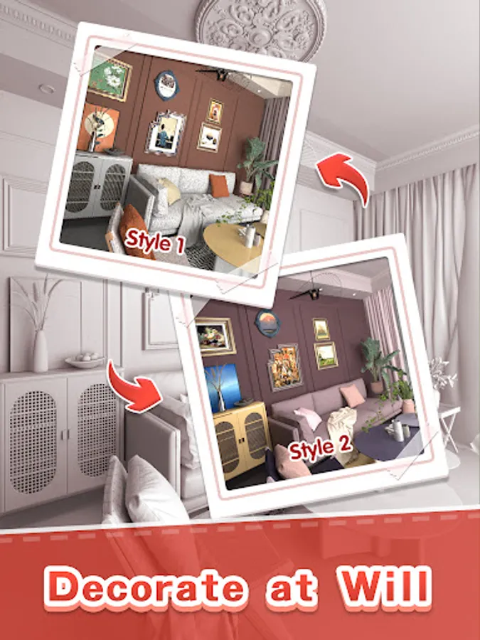 - Complete different levels, unlock rooms one by one.By decorate and designing, you can make the room extra beautiful and satisfy your desire to dress up. Awesome relaxing games!