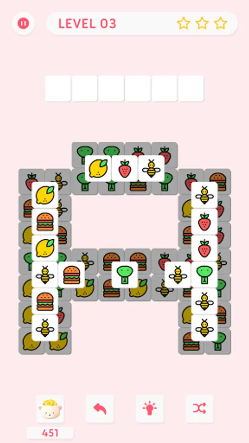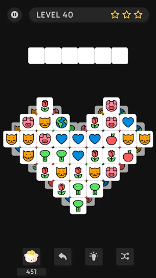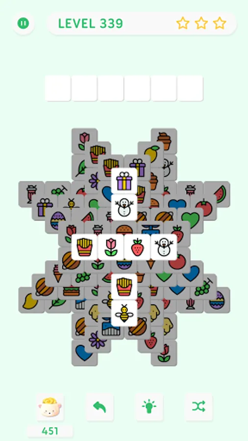 This addictive triple match tiles game is all you need to experience the comfy zest of board game from your screen. Tune into an endless fun of tile puzzle as you win levels. Try the game today and have fun!
