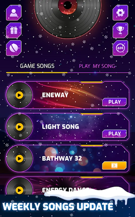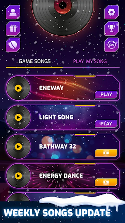 The home screen shows the highest score that you have made, a button to turn ON/OFF the background music and a list of all the soundtracks integrated into this game. You can view your highest score in the top left corner of the screen. Find the music button on the top right corner of the screen.