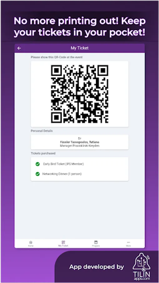 - After registration your conference ticket is stored as a QR code, and an offer for accommodation during the conference is included.