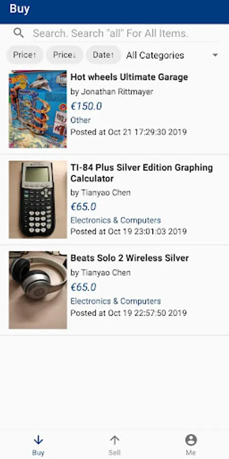 6. Filter items by price/date/categories.